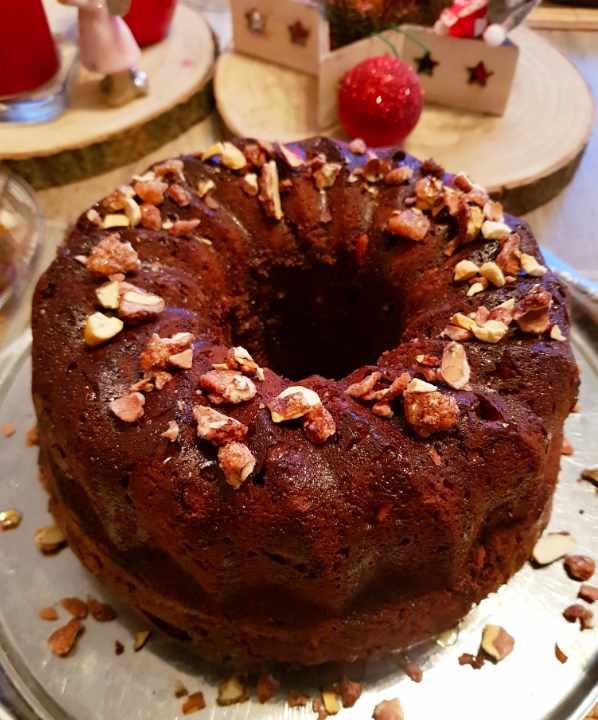 Jetzt fängt bei den kühnen Schwestern die Zeit an, wo fleißig gebacken wird. Die ersten Kekse sind in den Dosen verstaut (Rezepte folgen) und weitere werden folgen. Zwischendurch darf auf der Kaffeetafel auch ein hübscher Gugelhupf nicht fehlen.  Dieser hier ist ganz besonders lecker, da er durch die gebrannten Mandeln einen Extracrunch bekommt und durch den Zimtsirup, mit dem er getränkt wird, besonders saftig ist. Dieser Gugelhupf ist einfach der perfekte Kuchen zur Winterzeit mit weihnachtlichen Gewürzen und viel Schokolade.