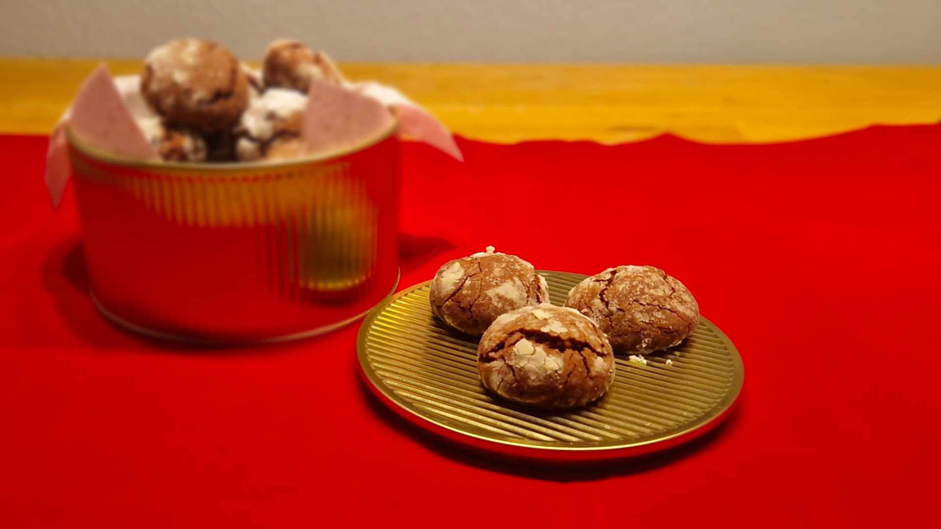Diese Plätzchen sind eine tolle Mischung aus Brownie und Keks. Sie werden wie Brownies zubereitet und nach dem Backvorgang sind sie erst recht weich, werden dann nach dem Abkühlen lecker knusprig. Der  Puderzucker auf dem dunklen Teig springt beim Backen auf, deshalb werden diese Kekse auch Chocolate Crackles genannt. Verschlossen in einer Blechdose halten sie sich mehrere Wochen.